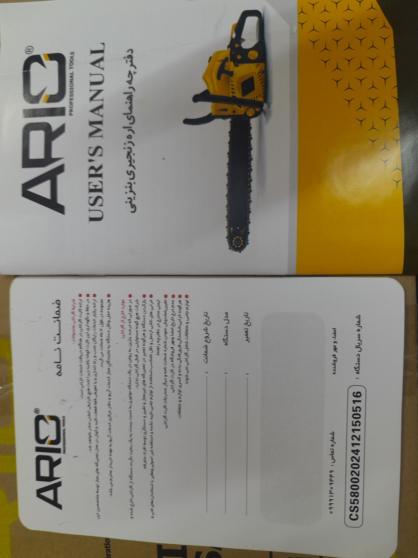 اره زنجیری بنزینی اریو مدل 2400سایز50سانت یک سال گارانتی